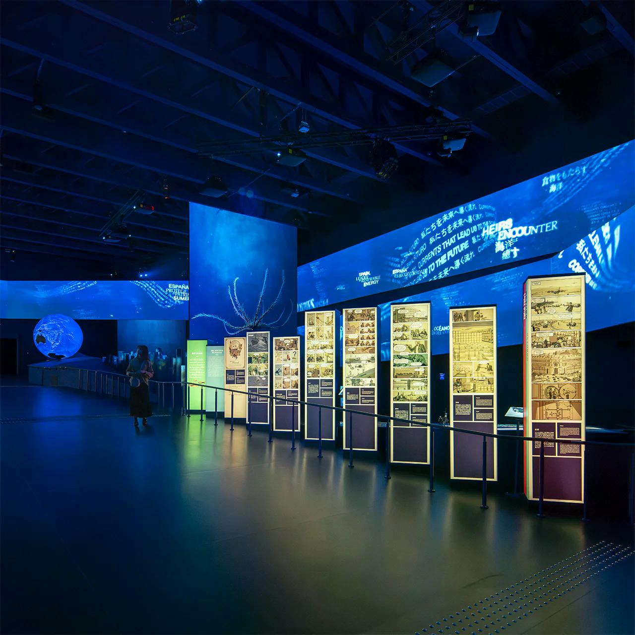 Step into a monumental, underwater sensory journey at the Spain Pavilion at Osaka Expo 2025. Spanning 3,500 square meters, this immersive video projection envelops visitors in a world of motion and light.